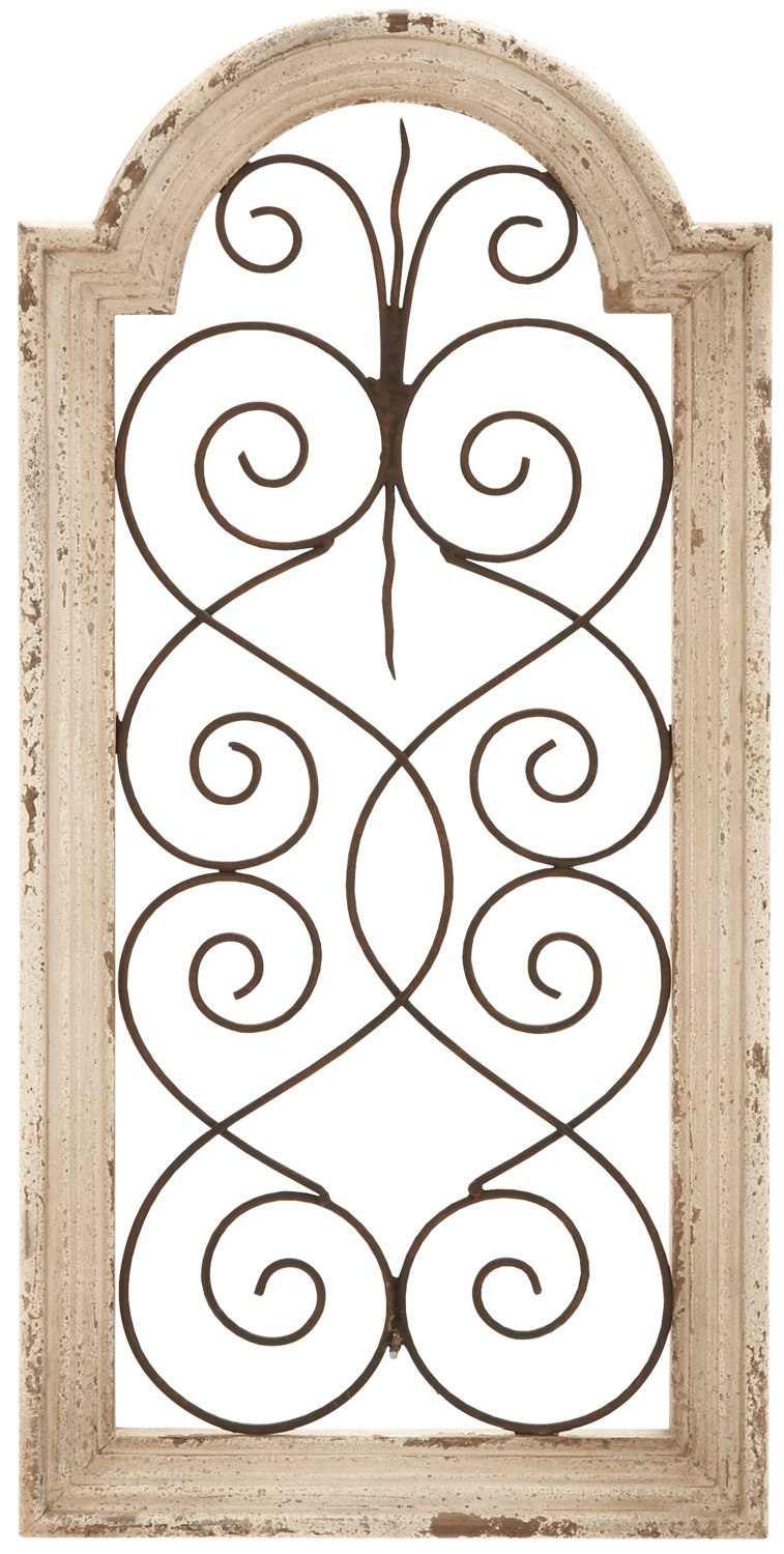 Ajoutez de la texture et de l'histoire à vos murs grâce à ce panneau mural élaboré. Doté d'un cadre arqué vieilli et blanchi et de détails de style fer forgé, cet accessoire confère une touche « shabby-chic » et une allure élégante champêtre à votre demeure.