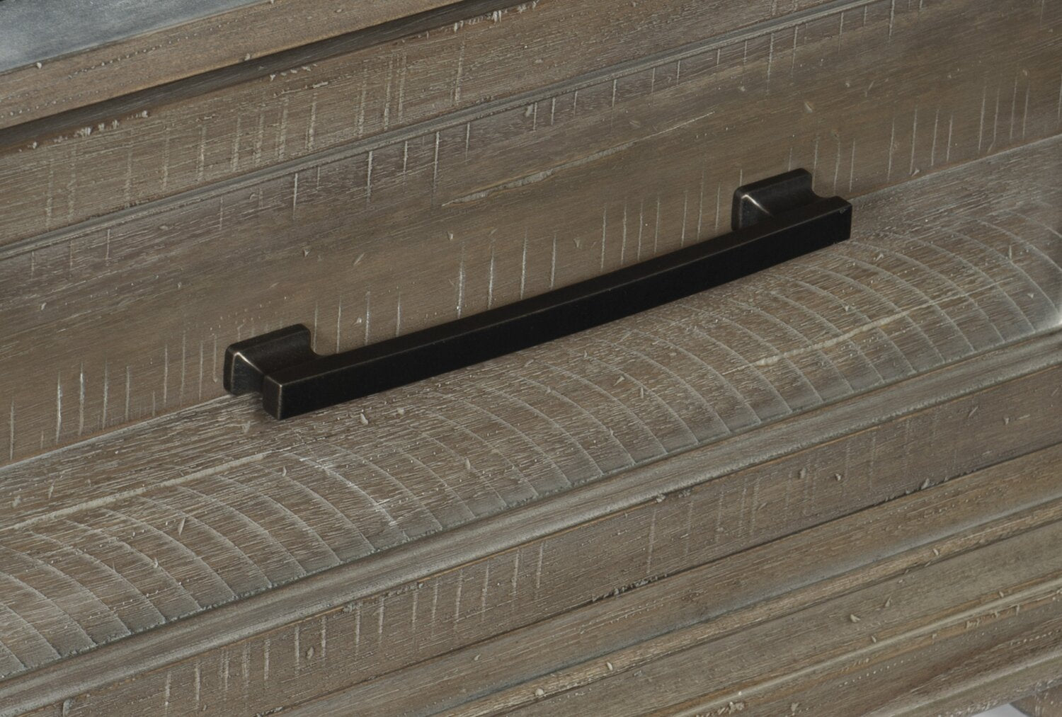 | Quincaillerie | Poignées de type barre de teinte étain qui contrastent avec le fini bois. |
