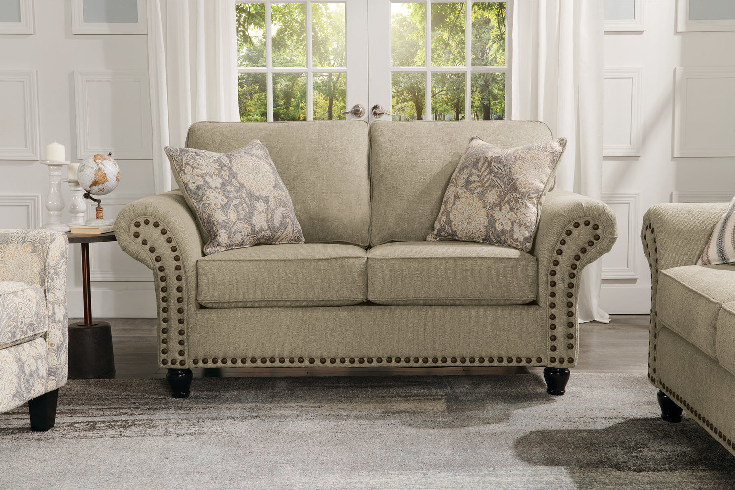 | Vendu séparément | Le sofa, le fauteuil, le pouf et le sofa sectionnel assortis peuvent être achetés séparément de cette causeuse. |