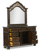 | Détails décoratifs | Des gravures florales traditionnelles rehaussent les tiroirs, les portes et les rebords de la commode, tandis que des pattes en oignon procurent un soutien robuste. |