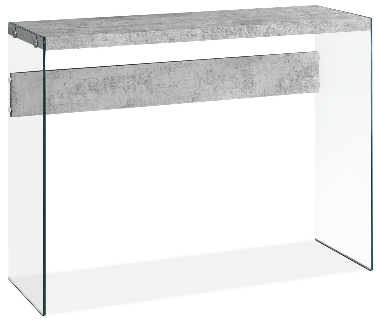 - Un dessus gris ciment et une base en verre confèrent une apparence remarquable et moderne à cette table.