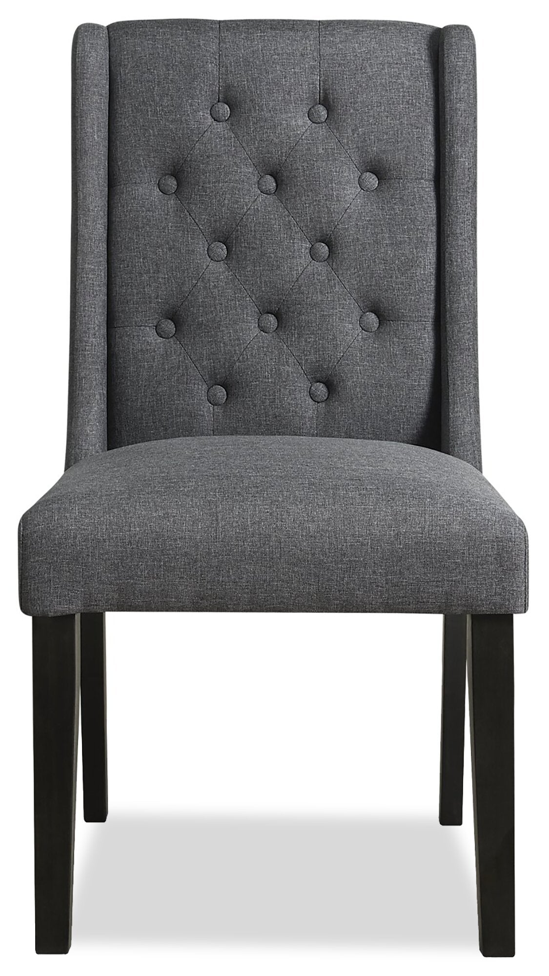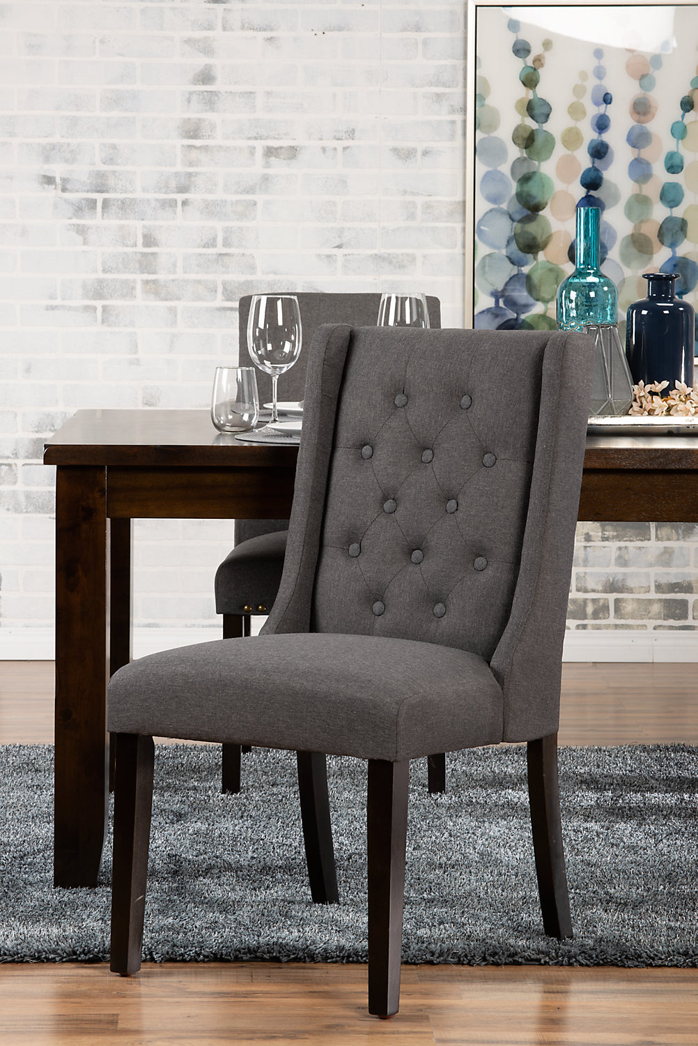 Chaise de salle à manger York en tissu d’apparence lin avec bordure de clous décoratifs - grise