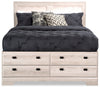 Lit plateforme de rangement Levi en bois avec tête de lit et cadre de lit, gris bois de grève - format grand lit