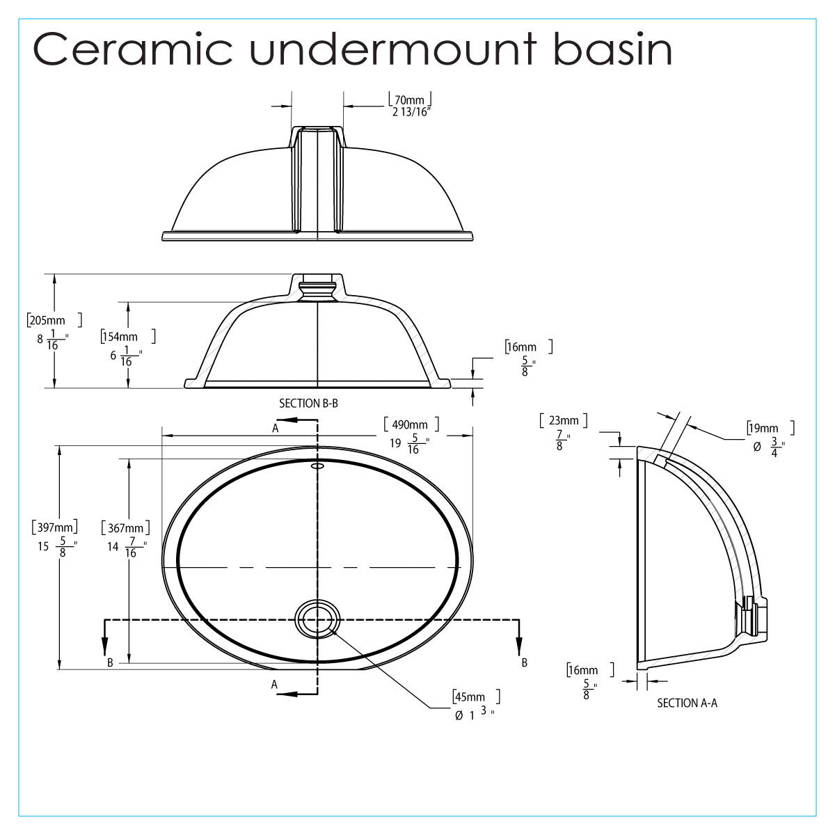 Largeur : 17 po (43,2 cm) Hauteur : 9 po (22,9 cm) Profondeur : 20 po (50,8 cm)